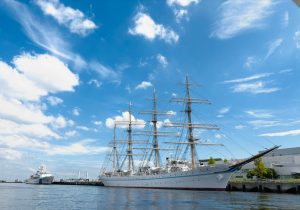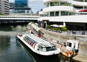 横浜駅東口、ハンマーヘッド、赤レンガ倉庫、山下公園など横浜の観光地を結ぶ船です。